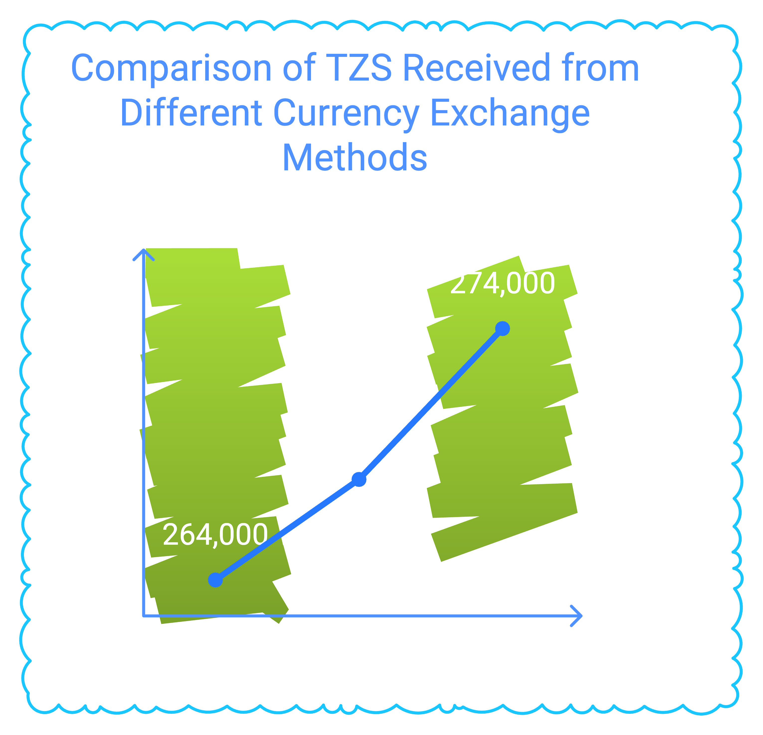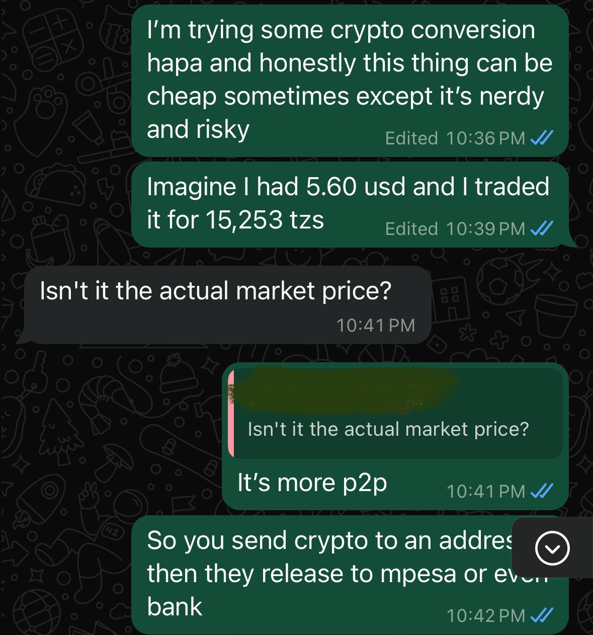“Sign here,” “sign there,” “here is your money…” She handed me a pile of cash. I eagerly picked it up and started counting right away, only to see my dreams of “chopping life” fade before my eyes. Whaaat? It was 264,000, TZS—4,000 TZS less than what a competitor bank was offering at a rate of 2,680 TZS per dollar, and a whopping 10,000 TZS difference if I’d used a crypto off-ramp at a rate of 2740 TZS.